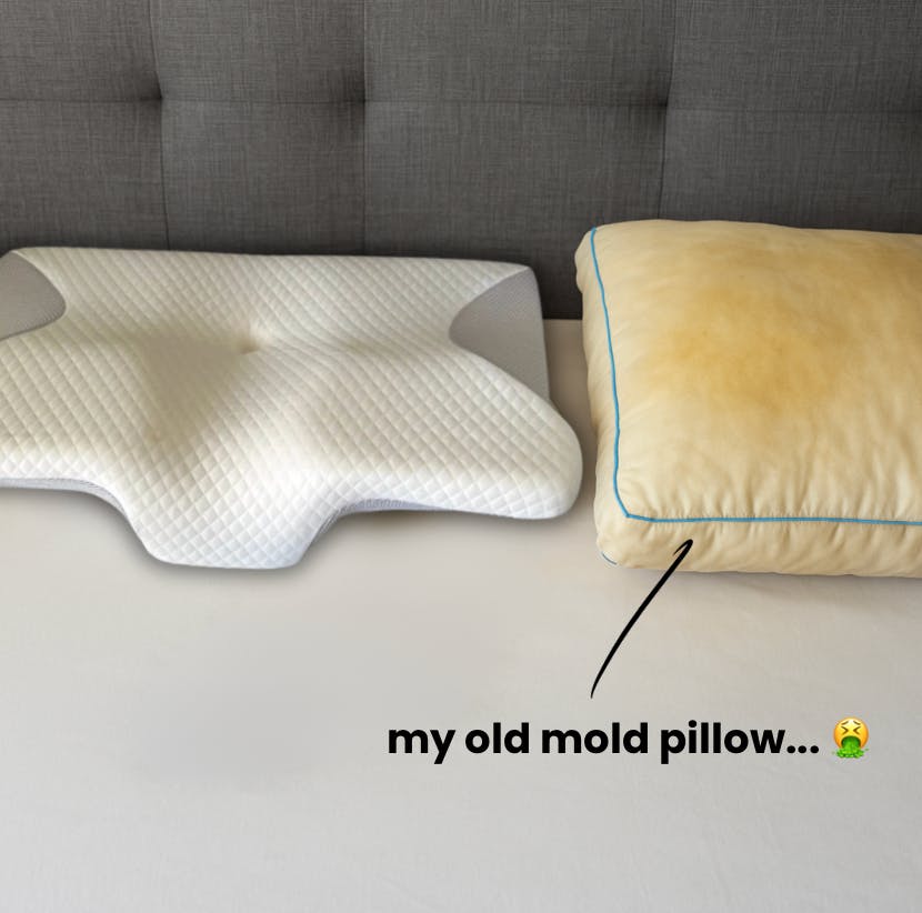 Over time, cotton pillows trap millions of bacteria and dust mites — the hidden cause of allergies and congestion.