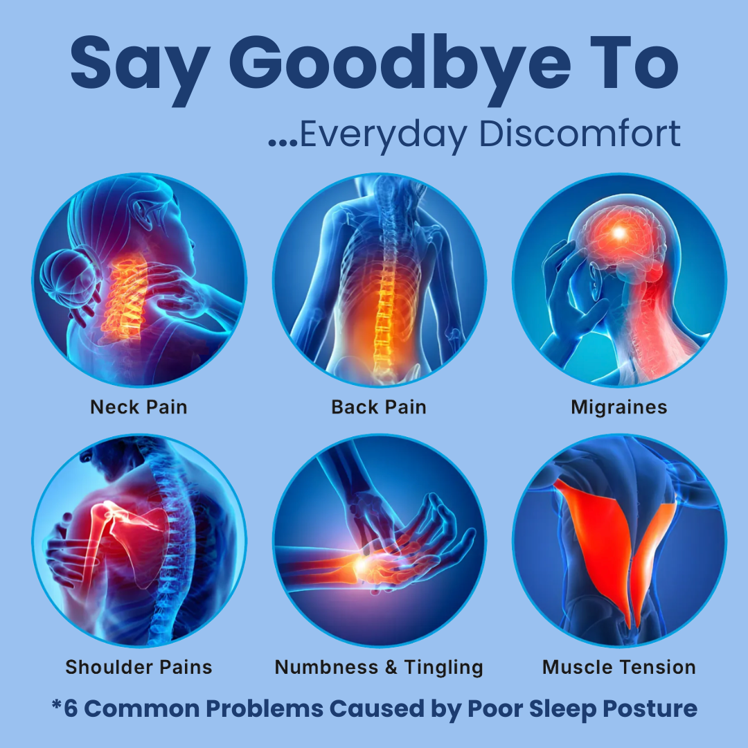 • Neck & Spine Alignment: Naturally aligns your neck and spine for pain-free mornings