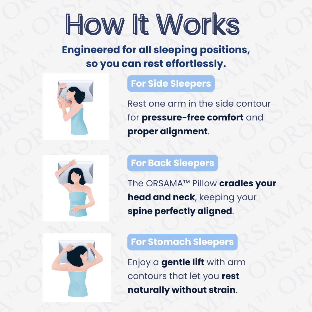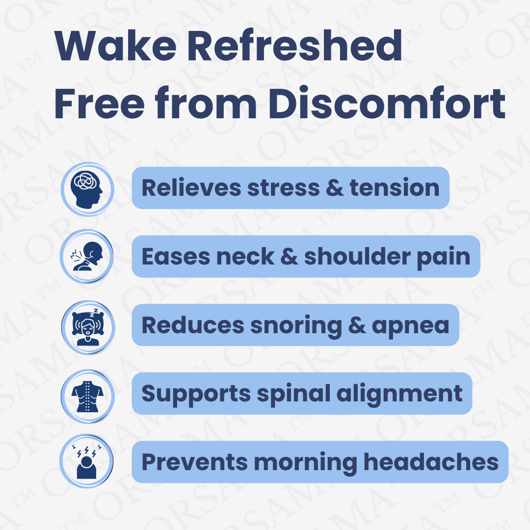 Engineered with high-density memory foam, ORSAMA™ adapts to your body’s natural curve and relieves pressure — not just on your neck, but your back, shoulders, and all nerves.
