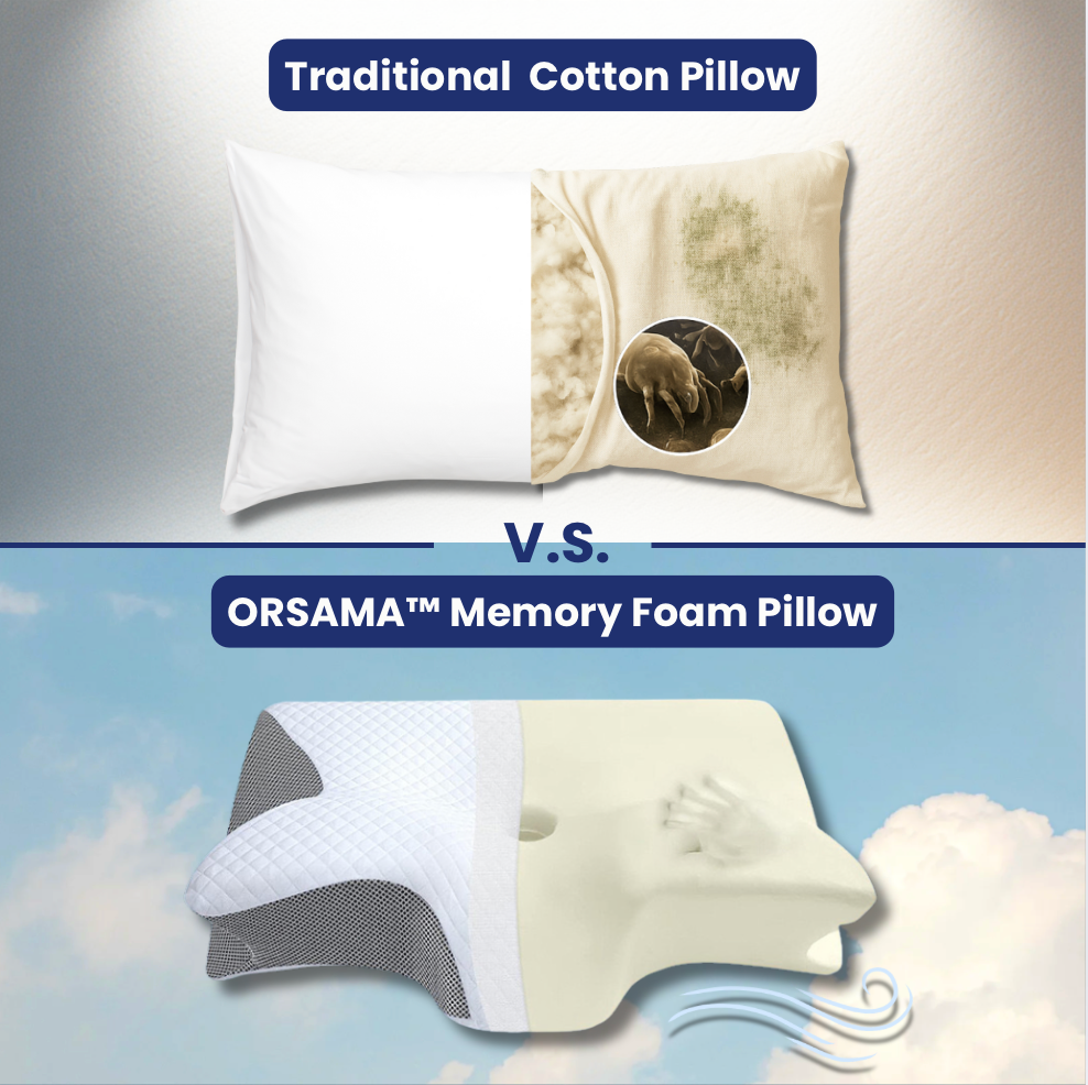 The ORSAMA™ Memory Foam Pillow stays hypoallergenic and breathable for years of cleaner, healthier sleep.