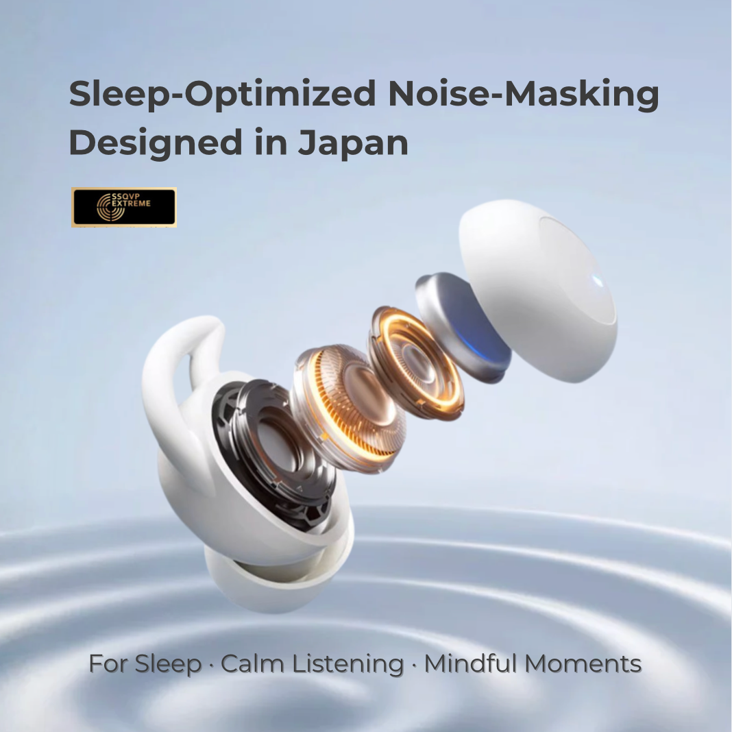 Each earbud combines passive noise isolation with an adaptive noise-masking engine tuned to counter snoring’s low-frequency rumble.